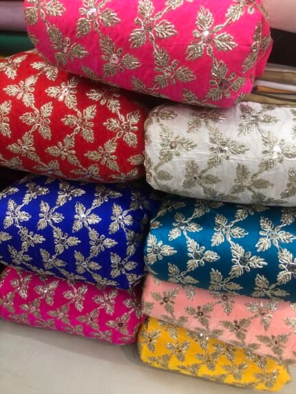 Pure saga silk heavy zari embroidered fabric with sequence