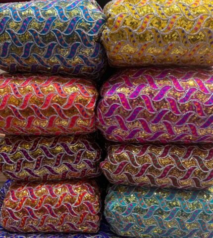 Pure saga silk heavy sequence embroidered fabric