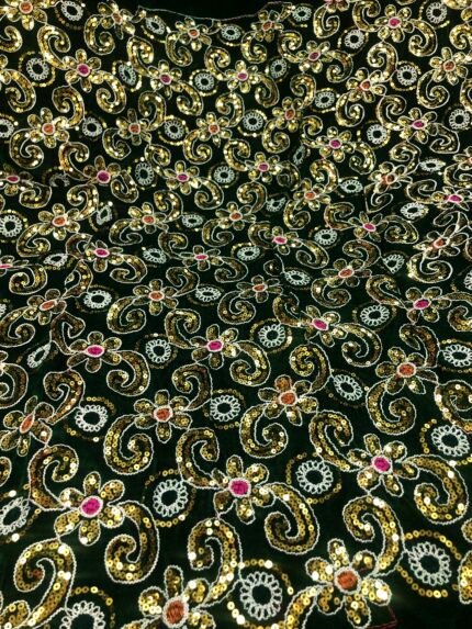 Viscose velvet thread work with rainbow sequence embroidered fabric