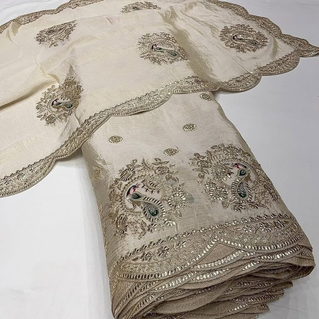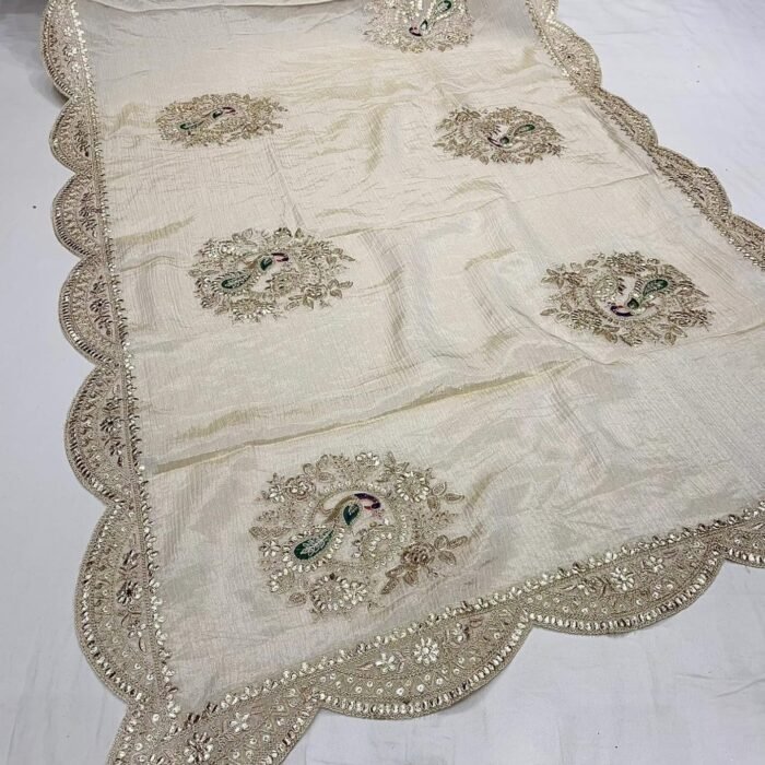 Home Boutique Fabric Cosmos Silk Peacock Embroidary Dupatta