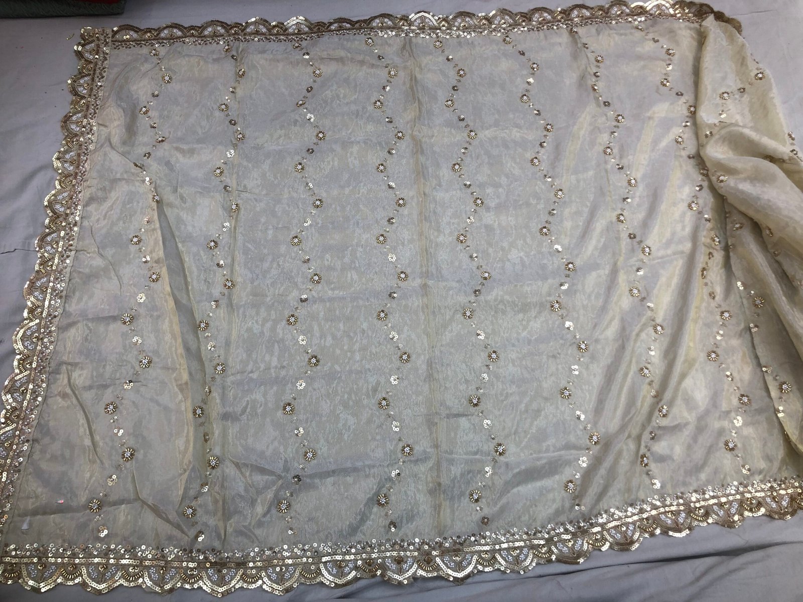 Pure cosmos silk heavy beads embroidery