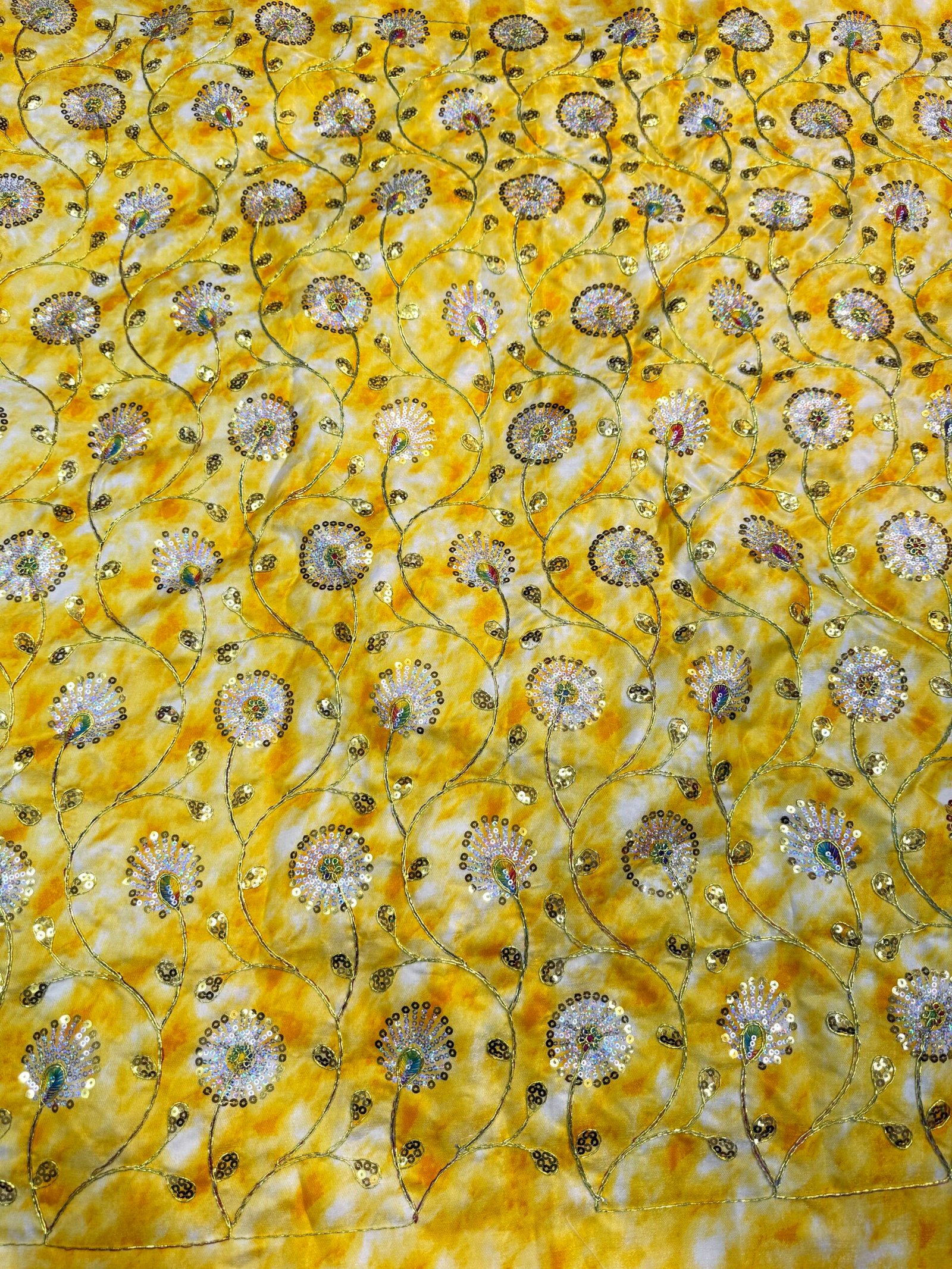 Saga silk sequence embroidered fabric