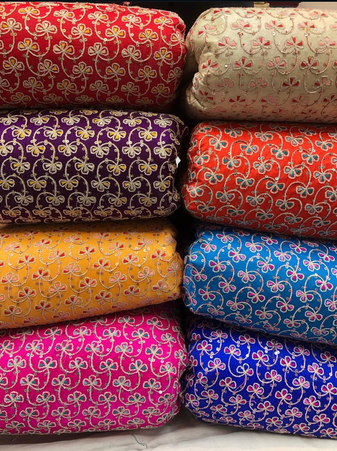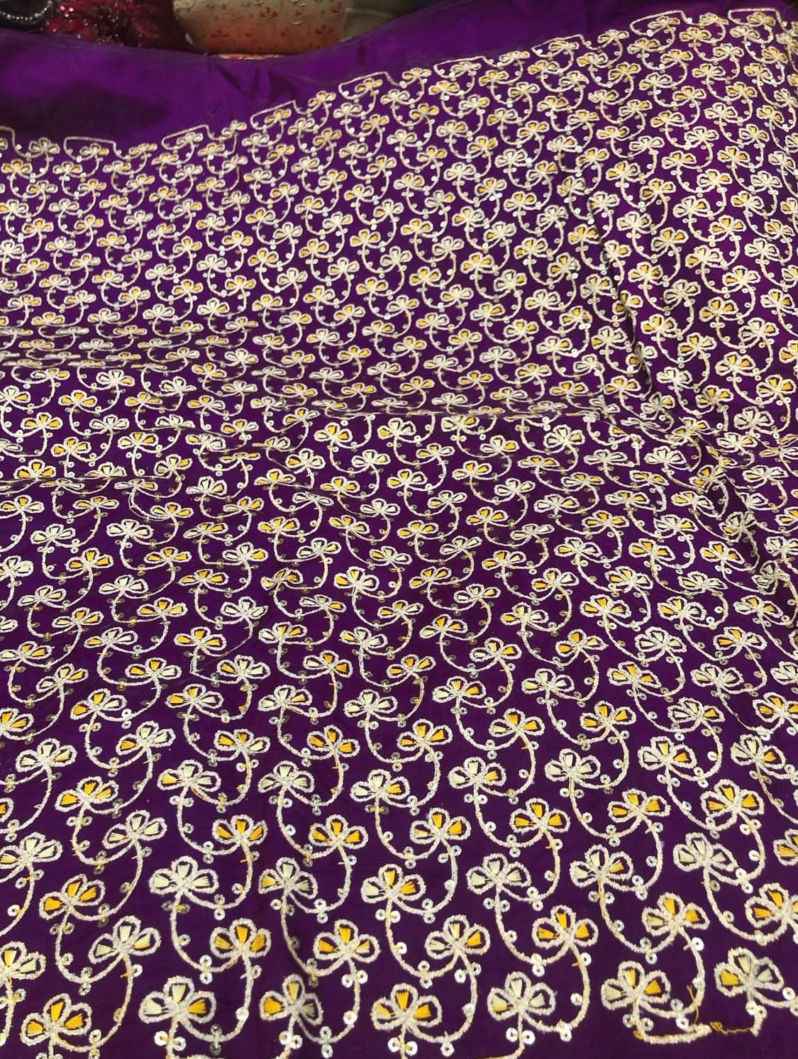 Pure saga silk heavy sequence embroidered fabric